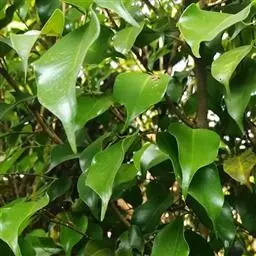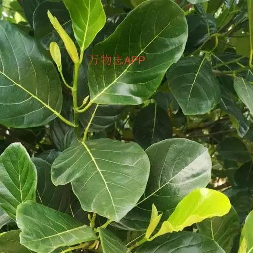常绿乔木,树高10-20米,胸径达30-50厘米;老树常有板状根;树皮厚,黑褐色;小枝粗2-6毫米,具纵绉纹至平滑,无毛;托叶抱茎环状,遗痕明显。叶革质,螺旋状排列,椭圆形或倒卵形,长7-15厘米或更长,宽3-7厘米,先端钝或渐尖,基部楔形,成熟之叶全缘,或在幼树和萌发枝上的叶常分裂,表面墨绿色,干后浅绿或淡褐色,无毛,有光泽,背面浅绿色,略粗糙,叶肉细胞具长臂,组织中有球形或椭圆形树脂细胞,侧脉羽状,每边6-8条,中脉在背面显著凸起;叶柄长1-3厘米;托叶抱茎,卵形,长1.5-8厘米,外面被贴伏柔毛或无毛,脱落。