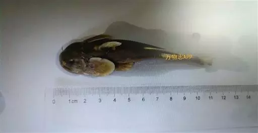 体扁平,头大尾小,头部特别扁平,背鳍起点之前隆起,体后部侧扁。口宽大,下位,稍呈弧形。上下颌具呈带状排列的细齿,分布在整个口盖骨上。唇厚,肉质,有多数乳突和皱褶,稍成吸盘状。须4对,口角须最粗。鳃孔小,位于胸鳍基部上方。眼小,位于头顶,有皮膜覆盖。背鳍不发达,脂鳍长而低,胸鳍大而阔,呈圆形,吸盘状,富肉质。胸、腹鳍第一根软鳍条很发达,变得十分肥大。臀鳍短小,尾鳍截形;体无鳞。背部和尾部黑褐色,腹部白色。