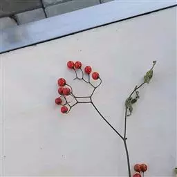 浆果扁球状,直径约3.5厘米,初绿白色,成熟后橙红色,果柄长2-2.5厘米,具细直刺;种子干后扁而薄,边缘翅状,直径约4毫米。