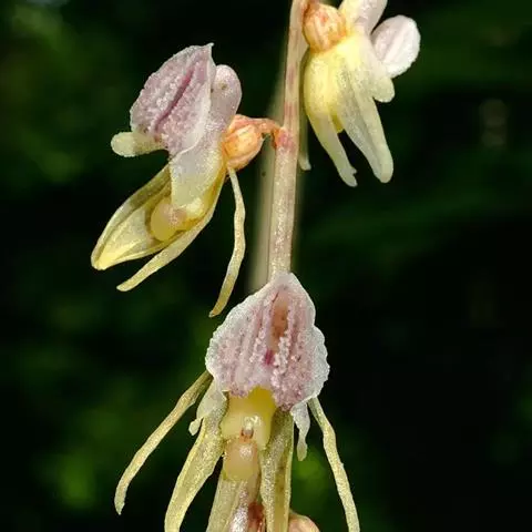 属于中海拔地区的原生兰,其唇瓣卷成喇叭状包住上方的蕊柱,并且露出内侧的黄斑,极具特色,观赏性高。