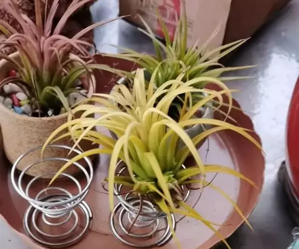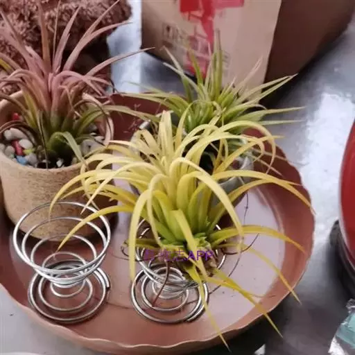 空气凤梨原产于中,南美洲高原,能耐5°C的低温,适宜生长温度为15°C-25°C,高于25度时要加强通风和提高湿度。