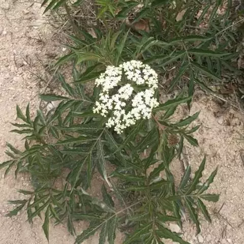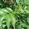 小乔木或灌木,高可达7米。新叶金黄色,老叶淡绿色,奇数羽状复叶,对生,椭圆形,长约10厘米,宽约5厘米,边缘有小的锯齿。花与叶同出,圆形聚伞状花序,顶生,长约10厘米,宽约9厘米,有花梗,花小而且密集,白色,雄蕊与花冠裂片等长,花药淡黄色,子房3室。浆果状核果,呈球形,直径约4毫米,深紫色,椭圆形。花期4-5月,果期6-8月。