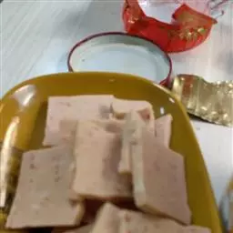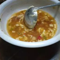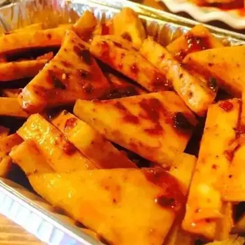 辣酱香豆腐就是将香豆腐放入骨汤或卤水中煮软,切成薄片后刷上辣酱,吃法有很多种,可以当休闲小吃,也可以当菜吃,或者作为火锅的底料,香味扑鼻,辣味十足,在长沙,吃香豆腐已经成了一种时尚。卖香豆腐的小店遍布大街小巷。