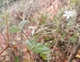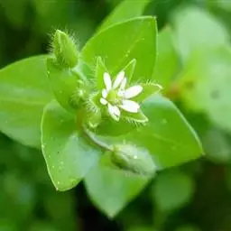 荷莲豆草,别名: 穿线蛇、水青草、青蛇子、有米菜,拉丁文名:Drymaria diandra. 是石竹科、荷莲豆草属一年生草本,长60-90厘米。根纤细。茎匍匐,丛生,纤细,无毛,基部分枝,节常生不定根。叶片卵状心形,托叶数片,小形,白色,刚毛状。聚伞花序顶生;苞片针状披针形,边缘膜质;花梗细弱,短于花萼,被白色腺毛;萼片披针状卵形,蒴果卵形,种子近圆形,表面具小疣。花期4-10月,果期6-12月。