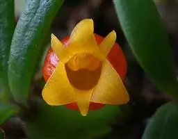 独角石斛,Dendrobium unicum,兰科石斛属植物。花瓣橙黄色,唇瓣反转似犀牛角,…
