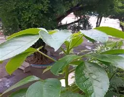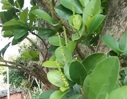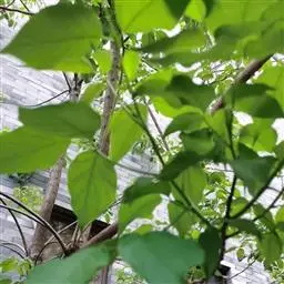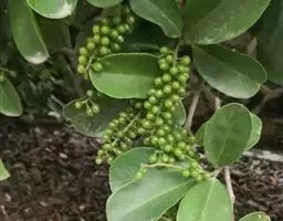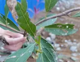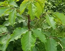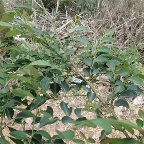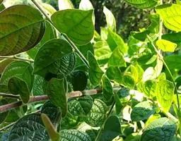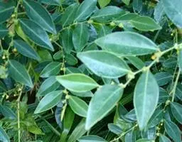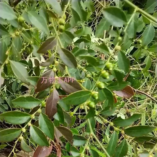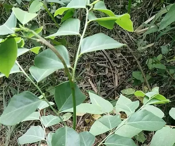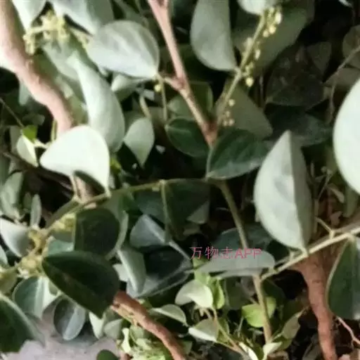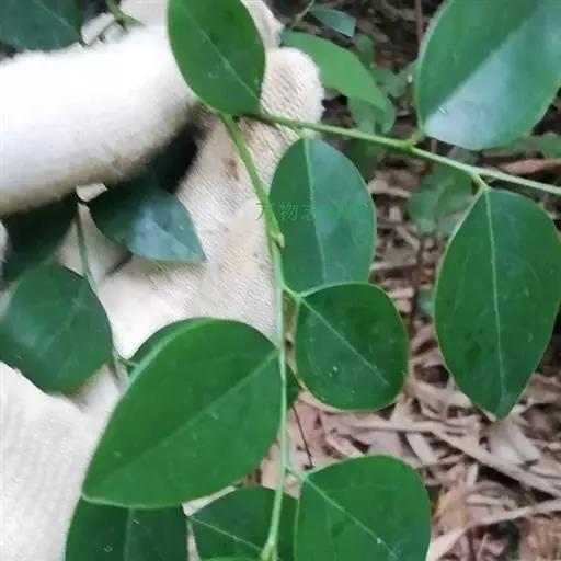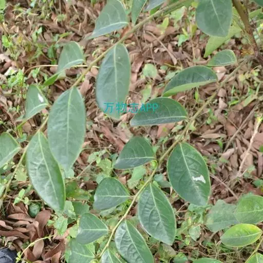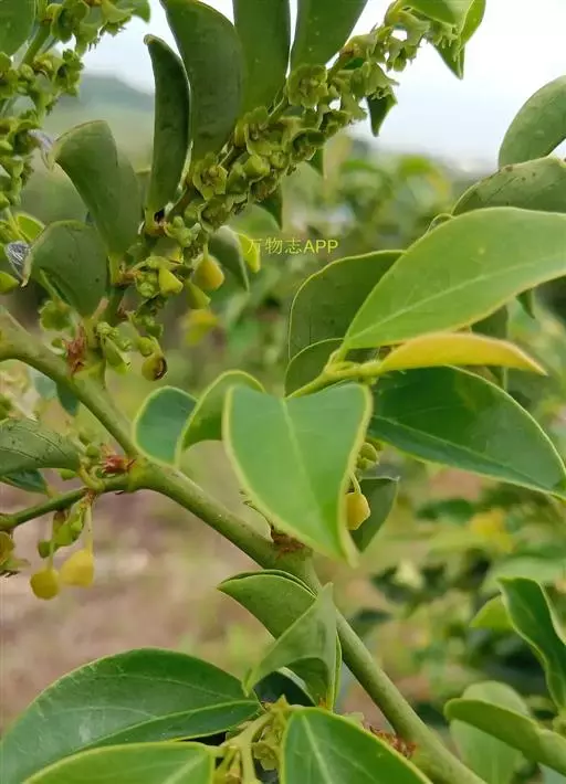 枝常呈紫红色,小枝灰绿色,无毛。叶互生,单叶,具短柄;叶片革质,卵形或宽卵形,长3—6厘米,宽2—3.5厘米,端钝或急尖,全缘,上面有虫蚀斑纹,下面灰白色,具细点,托叶三角状披针形。枝及叶干后变为黑色。气微,味淡微涩。