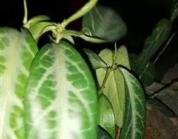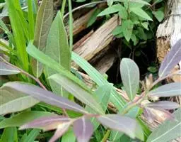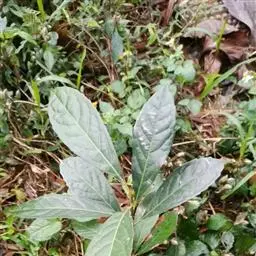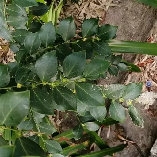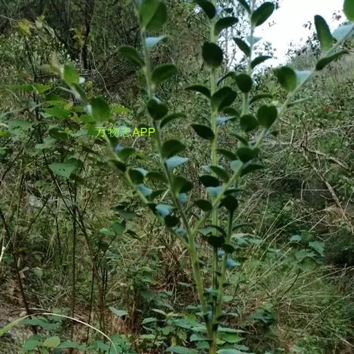 叶:卵形至卵状披针形,长2.5-4厘米,两端均钝,。上面深绿色,秃净,背面粉绿。