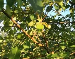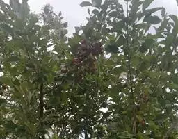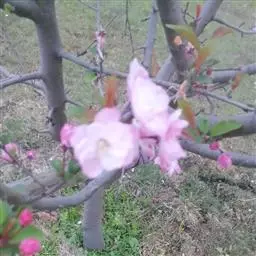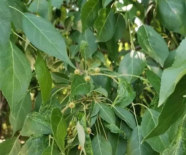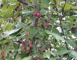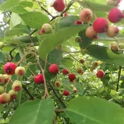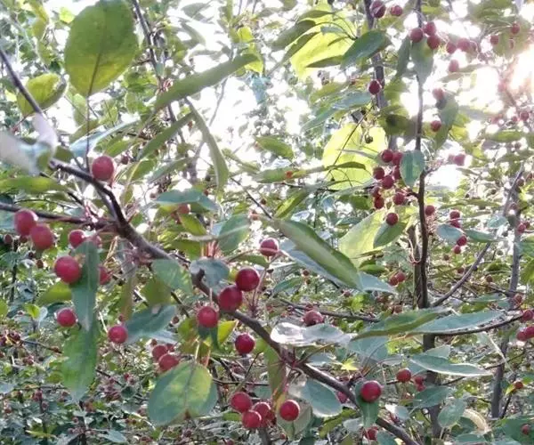 山荆子(学名:Malus baccata (L.) Borkh.):为落叶乔木,树高可达4-5米,最高可达10米以上。灰褐色,光滑,不易开裂。新梢黄褐色,无毛。嫩梢绿色微带红褐。叶片椭圆形,先端渐尖,基部楔形,叶缘锯齿细锐。伞形总状花序。花白色,花柱5或4,基部有长柔毛。4-6朵花集生在短枝顶端。6月开花,果近球形,直径0.8-1厘米,红色或黄色,脱萼,萼洼有圆形绣斑,果柄长为果实的3-4倍。果实9月中、下旬成熟,出种率4.4%。种子小,千粒重6.7克,每千克14-15万粒。