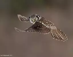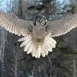 鬼鸮 大多单独活动,没有迁徙行为,但秋冬季也常常游荡到低海拔地区的森林中,也喜欢到人家附近活动。由于它的叫声多变,如吹笛一般,每隔几秒钟就重复一次,并且不断地交替变化,所以给人一种阴森可怕的感觉,因此得名。它的飞行快而直,稍呈波浪形飞行。主要以鼠类为食。也食昆虫、小鸟和蛙类等。捕食方式可以在飞行中猎食,也可以栖息于树上,等待猎物出现时才突然袭击。