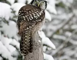 鬼鸮(学名:Aegolius funereus)是鸟纲鸱鸮科的鸟类, 全长23-26厘米。共有6个亚种。雌雄羽色相同。额、头顶及枕部褐色,有白色椭圆斑。面盘白色外侧羽缘褐色。胸以下为白色,有褐色纵斑。翅褐色。主要栖息于草原、沼泽、苔原附近的针叶林和针阔混交林内,属于留鸟,秋冬季也常常游荡到低海拔地区的森林中,分布于欧洲、俄罗斯、蒙古、亚洲中部、日本北海道、美国的阿拉斯加和加拿大等地。