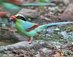 黑额树鹊是雀形目、鸦科的鸟类,体长约38厘米。黑色的尾甚长,上背、背、下腹及尾覆羽棕色。…