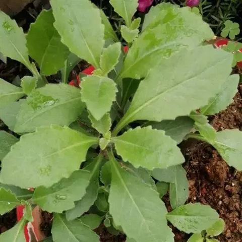 叶互生,长倒披针形,基生叶长达30厘米,上部叶渐短,披针形,先端钝圆,基部渐狭,边缘具细尖锯齿。