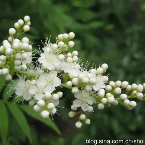 喷雪花为蔷薇科 珍珠梅属 植物。因其开花时花朵密集,一片雪白,故得此名。又因其叶形似柳叶,花白如雪,又称“雪柳”。
