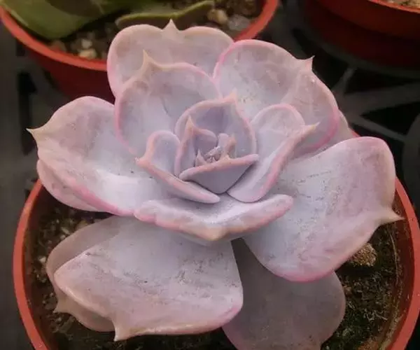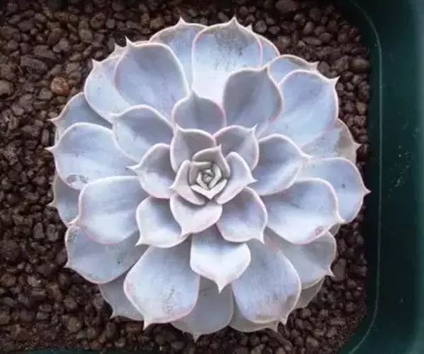 景天科拟石莲花属多肉植物,原产于墨西哥,株幅11-17厘米。叶片肉质,呈浅粉色或藕荷色,叶顶端有小尖,先端叶缘弯折,叶面中部内凹。浇水见干见湿。因叶片带粉,所以浇水时应避免叶片接触水,以免影响美观。如叶心积水,炎热潮湿时易导致腐烂,暴晒则易留疤痕。