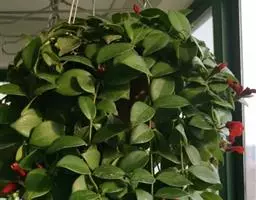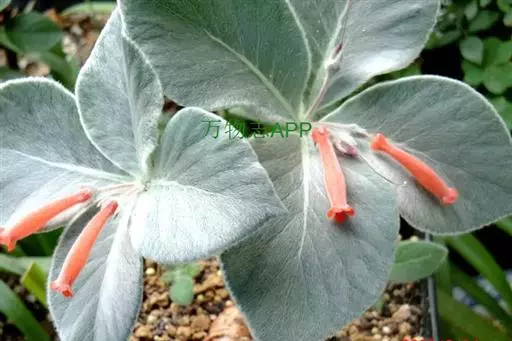 叶片生于枝条上部,椭圆形或长椭圆形,交互对生,全缘,先端尖,绿色,叶长8至12厘米,宽4至6厘米,叶表密生厚实的白色绒毛,有光泽。花生于枝顶端,数朵群聚开放,花筒较细,长3至4厘米,直径约2厘米,花瓣先端稍微弯曲,橙红色或朱红色,外被白色绒毛,春末至初秋开放,4至5月开花最盛。
