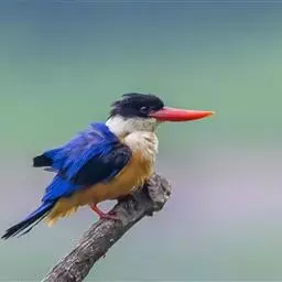白领翡翠:有50个亚种。体长18厘米,体重35-40克。是一种蓝白色翡翠鸟。…