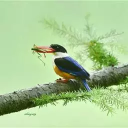 翠鸟属是佛法僧目翠鸟科中的一属。自额至枕蓝黑色,密杂以翠蓝横斑;背部辉翠蓝色,…