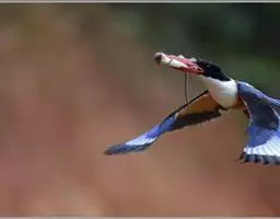 领地意识非常强,大多数的本土防卫措施是通过语音指令或呼声威慑对方。鸣声类似振动机械的敲击声。在两个伙伴之间则发生一种短尖叫威胁。寻找猎物的方法和其他翠鸟类似。该种迁移,尽管它们能够忍受北美气候中严酷的低温。 白腹鱼狗 主要食物包括鱼,大多是鳟鱼,杜父鱼和大西洋鲑鱼,通常消耗小鱼。当鱼稀缺时也吃软体动物,甲壳类动物,水生昆虫(蜻蜓),两栖动物,爬行动物,其他类幼鸟,小型哺乳动物和浆果。