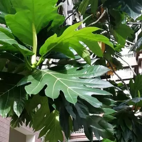 面包树 Fosberg)是桑科波罗蜜属植物。叶大,成熟之叶羽状分裂,表面深绿色,…