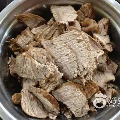 2.前腿肉洗净后煮至8成熟,捞出沥干,再切片。