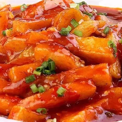 5.土豆片:同样煎制双面焦黄后盛起。