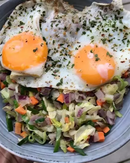 11.最后加入卷心菜一类没有预处理的易熟蔬菜炒到断生,撒上芝麻和香菜即可起锅