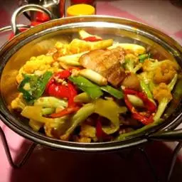 干锅花菜,是湘菜常见的一道菜,以花菜、秀珍菇、蘑菇、青红尖椒为主要食材,…
