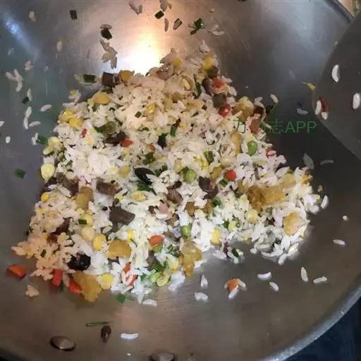 8.油热后,下刚才所有处理过的食材,以及调料包,快速翻炒,根据个人口味再加盐调整咸淡。最后出锅前撒上白芝麻。