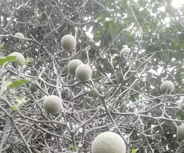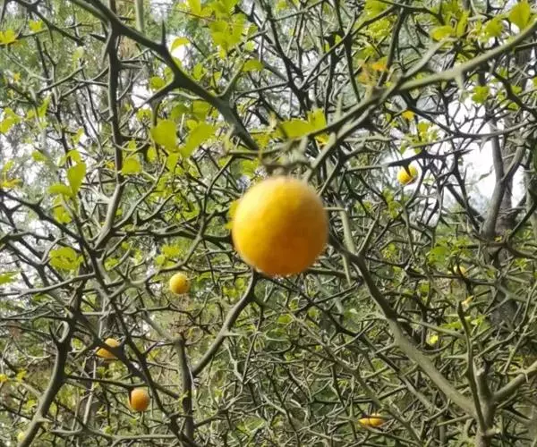 果近圆球形或梨形,大小差异较大,通常纵径3-4.5厘米,横径3.5-6厘米,果顶微凹,有环圈,果皮暗黄色,粗糙,也有无环圈,果皮平滑的,油胞小而密,果心充实,瓢囊6-8瓣,汁胞有短柄,果肉含粘液,微有香橼气味,甚酸且苦,带涩味,有种子20-50粒;种子阔卵形,乳白或乳黄色,有粘腋,平滑或间有不明显的细脉纹,长9-12毫米。花期5-6月,果期10-11月。
