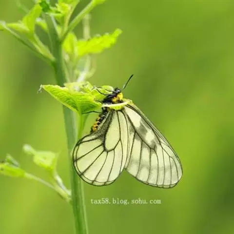 冰清绢蝶:是绢蝶科、绢蝶属的一种蝴蝶。翅展60-70毫米。翅白色,翅脉灰黑褐色。…