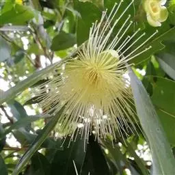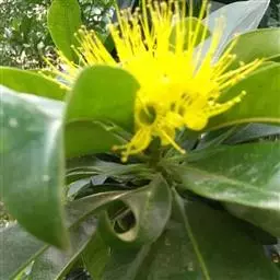 风景林:金蒲桃花期在11月和翌年2月,这个季节观花植物种类较允部分秋色叶树种叶色变红。在风景林建设中,将金蒲桃群植或与秋色叶树种混植,盛花期,大片的金黄色花朵绚丽夺目,在秋季蔚为壮观,营造独特的群体效果。