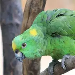 古巴亚马逊鹦鹉是典型的攀禽,对趾型足,两趾向前两趾向后,适合抓握,鸟喙强劲有力,可以食用硬壳果。…
