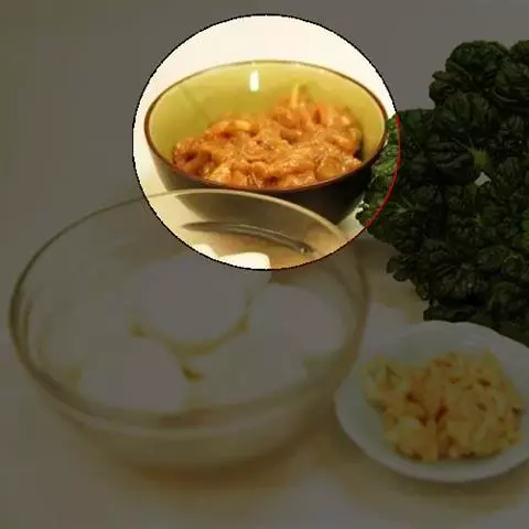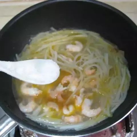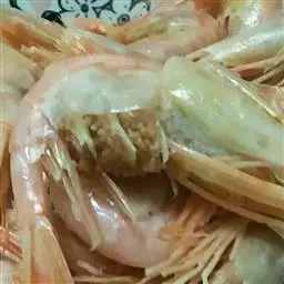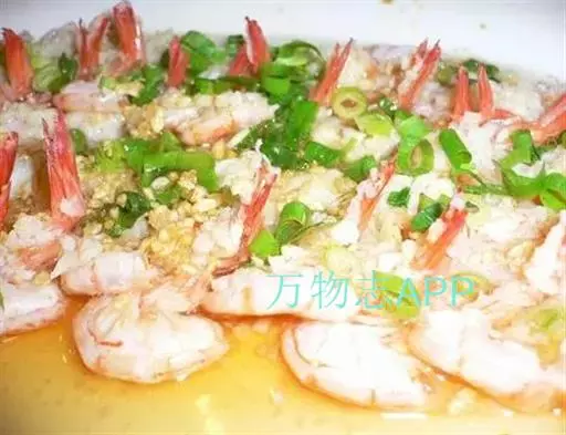 2、将虾放入碗内,加盐、胡椒粉、蒜茸、粉丝腌好,入笼蒸熟。
