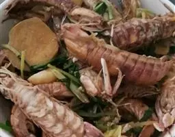 香锅虾是一道美食,制作原料主要有新鲜海虾、藕、洋葱。
