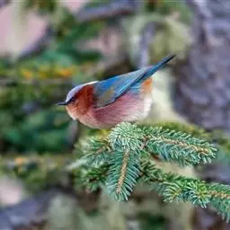 凤头雀莺:小型鸟类。体长9-10厘米,雄鸟呈毛茸茸的紫色和绛紫色,顶冠淡紫灰色,额及凤头白色,尾全蓝。…