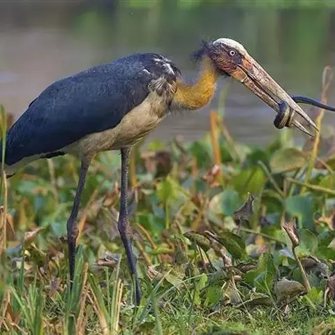 彩鹳:鹳科、鹮鹳属的鸟类。体长93-102厘米,体重2-3.5千克。橙黄色的嘴粗而长,…
