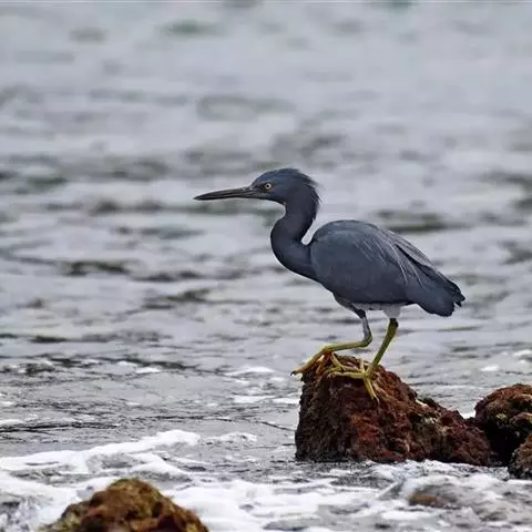 大蓝鹭是鹳形目鹭科的鸟类。共有5个亚种,体长137厘米。全身大部分羽毛呈灰蓝色羽毛,…