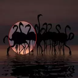 火烈鸟(学名:Phoenicopteridae):亦称红鹳。是鸟纲、红鹳科3属6种鸟类的通称。体高约80-160厘米,体重2.5-3.5千克。体型大小似鹳;嘴短而厚,上嘴中部突向下曲,下嘴较大成槽状;颈长而曲;脚极长而裸出,向前的3趾间有蹼,后趾短小不着地;翅大小适中;尾短;体羽白而带玫瑰色,飞羽黑,覆羽深红,诸色相衬,非常艳丽。