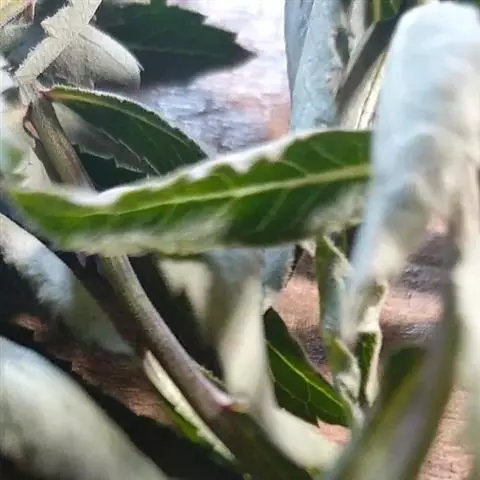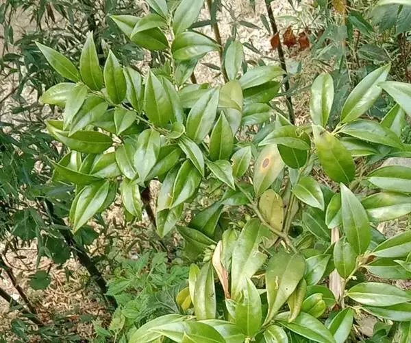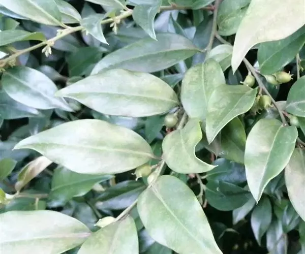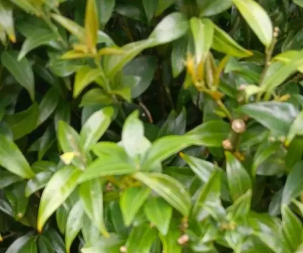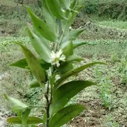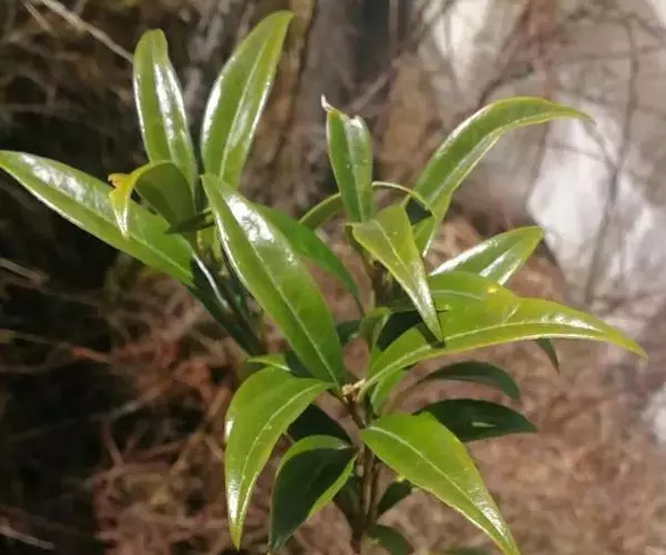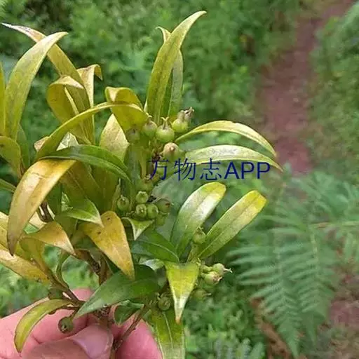 叶阔椭回状卵形、卵形、椭圆状披针形、披针形或狭披针形,较小的长2-3厘米,宽7-12毫米,较狭的长4-7厘米,宽7-14毫米,较大的长6-7厘米,宽2.5-3厘米,变化很大,但常见的为卵形或椭圆状披针形,长3.5-5.5厘米,宽1-2.5厘米。先端急尖或渐尖,兹部急尖或渐狭或圆,一般中部或中部以下较宽,叶面亮绿,叶背淡绿,叶面中脉凸出,无毛,稀被微细毛,大多数中脉近基部有一对互生或对生的侧脉,多少成离基三出脉(四川峨眉山所产植株,干后叶面全部侧脉隆起,且有明显的离基三出脉),叶背中脉稍平或凸出,无毛,全面平滑,侧脉不显;叶柄长3-6毫米。