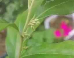 花序短总状,长1-2厘米,花序轴被微细毛;苞片披针形或卵状披针形;花白色,芳香;雄花2-7,占花序轴上方的大部,雌花2-5,生花序轴下部,通常下方雄花有长约2毫米的花梗,具2小苞片,小苞片卵形,长为萼片的1/3-2/3,上方雄花近无梗,有的无小苞片;雄花:萼片通常4,亦有3或5,内方的阔椭圆形或阔卵形,先端圆,有小尖凸头。外方的卵形,渐尖头,长各3毫米,雄蕊连花药长约7毫米;雌花:连柄长6-8毫米,柄上小苞多片,狭卵形,覆瓦状排列,萼片长1.5-2毫米。