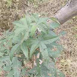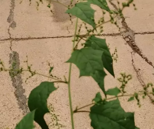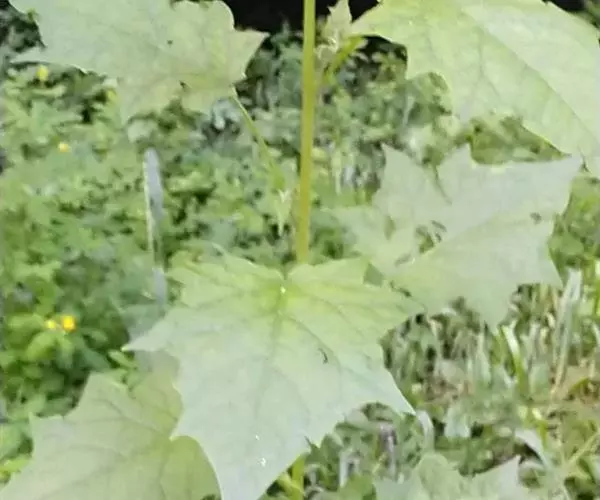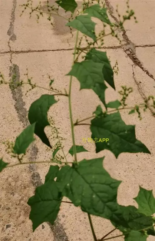 2、叶。叶宽卵形至卵状三角形,两面均呈亮绿色,基部圆形、截形或略呈心形,边缘掌状浅裂,轮廓略呈五角形;上部叶较小,多呈三角状戟形。