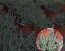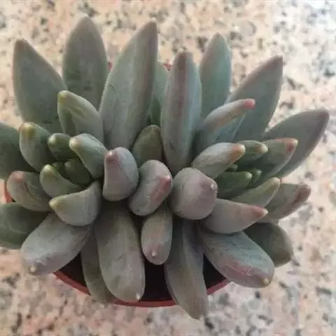 蓝黛莲是一种景天科厚叶草属植物。叶片呈略扁的圆柱形,排列成莲座状;颜色为灰绿色,…