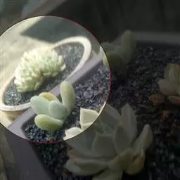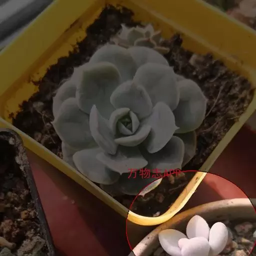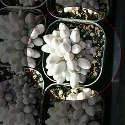 另外,在同样光照充足的养护条件下,桃之卵的叶片颜色比桃美人鲜艳。桃之卵成体的叶片比桃美人成体的更小且偏圆。此外,桃美人的叶片先端有时具凸起的小尖,而桃之卵则不会出现这种情况。
