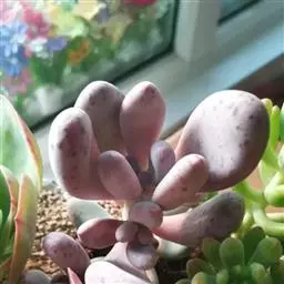 桃美人株形、叶形奇特,生长相对缓慢,容易保持姿态,整个植株犹 桃美人 如优美的工艺品,具有如蛋白石般淡雅而甜美的色彩,可点缀于露台或花园中,也可与其它景天科多肉植物搭配栽种,憨态可掬,妙趣横生,充满生气蓬勃之感。