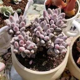 与桃美人易混淆的多肉品种有星美人、桃之卵。尽管它们的色泽、形态都与桃美人近似,但还是有不同之处的。