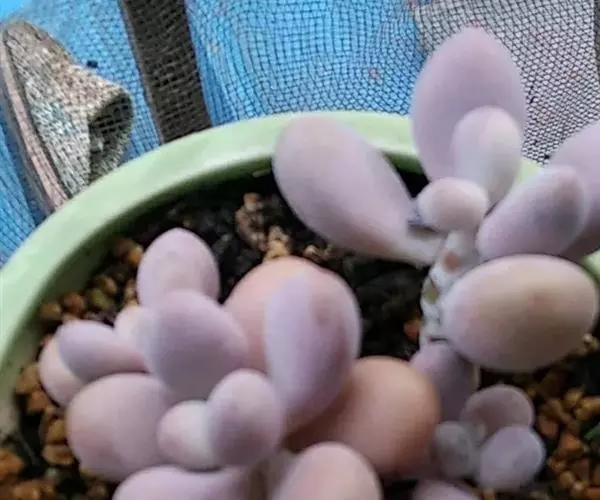 桃美人(Pachyphytum ‘Blue Haze’)是隶属于景天科、厚叶草属的多年生植物,多肉植物。是由月美人和稻田姬杂交而来的园艺品种。