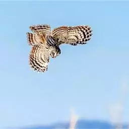 鸺鶹,全长145-170毫米,羽毛棕褐色,有横斑,尾巴黑褐色,腿部白色,爪子比较锋利。外形像鸱鸺,俗称小猫头鹰,但头上没有角状的羽毛。喜欢捕食老鼠、兔子等,对农业有益,为夜行性动物,少数时间白天也活动。属国家二级保护动物。
