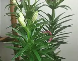 地上茎和叶片:百合的地上茎由茎盘的顶芽伸长而成。兰州百合地上茎直立无分权,植株高85厘米左右,其中花茎长约35厘米。在茎秆地下部件的节位着生数个到十几个小鳞茎,这种小鳞茎被称作“种球”。