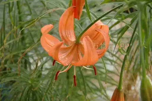 南川百合是百合科百合属植物,鳞茎未见。茎高40-100厘米,无毛。叶散生,中、下部的为条状披针形,…