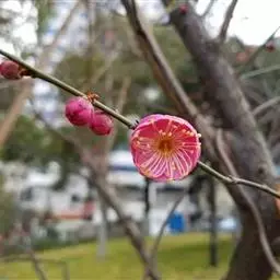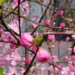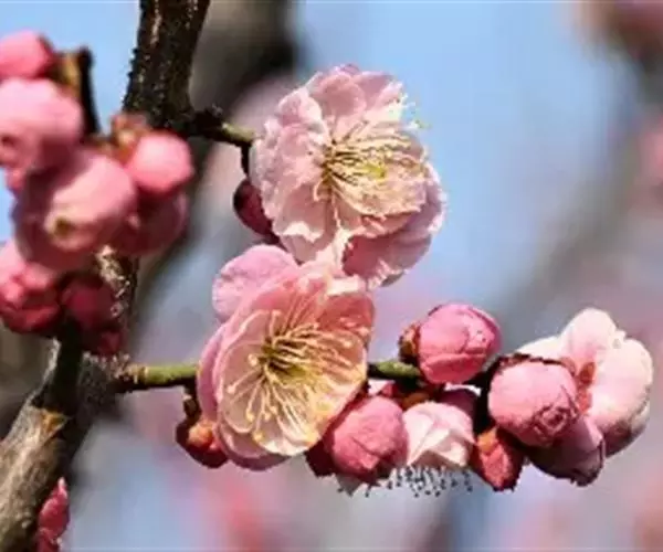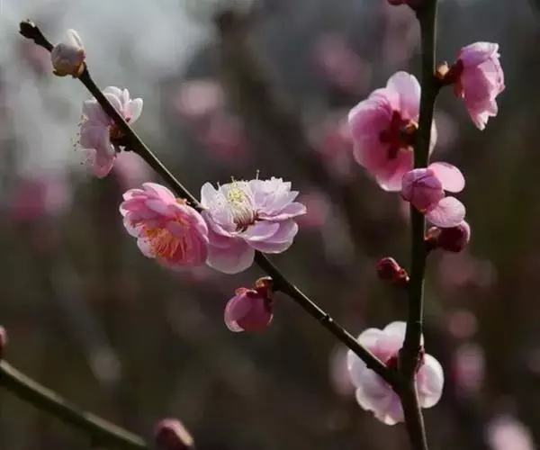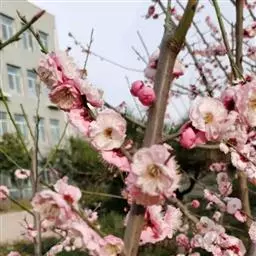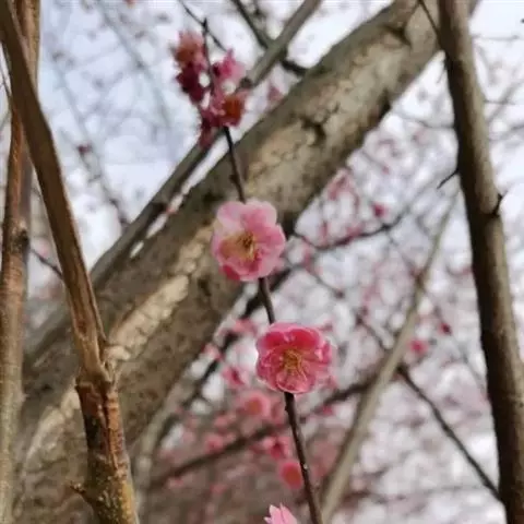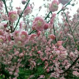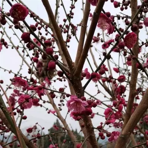 宫粉梅,属梅花品系中真梅系直枝梅类宫粉型,其花复瓣至重瓣,呈或深或浅的红色。宫粉梅是梅花栽培类型中品种最为丰富的个类型,其中有很多花果兼用之梅品。